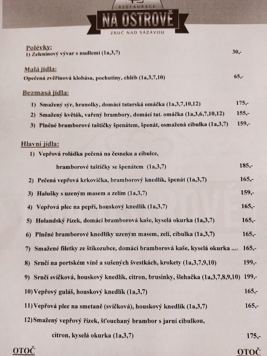 Welcome to Restaurace Na Ostrově, a hidden gem nestled at Nábřežní 74 in Zruč nad Sázavou, Czechia. This delightful restaurant offers a menu that captures the heart of traditional Czech cuisine, showcasing dishes prepared with fresh, locally sourced ingredients.